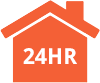 an orange circle that says 24hr emergency roof repairs and replacements